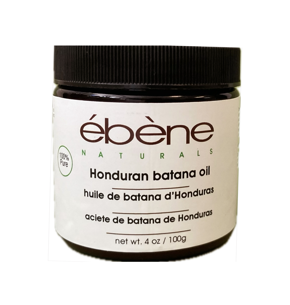Derived from the nut of the American palm tree, sister to the African Palm tree, and native to the rainforests of Honduras, pure Honduran batana oil has the consistency of a solid oil, accompanied by an earthy coffee aroma.  It melts at body temperature, it is non greasy, and penetrates well into hair and skin.